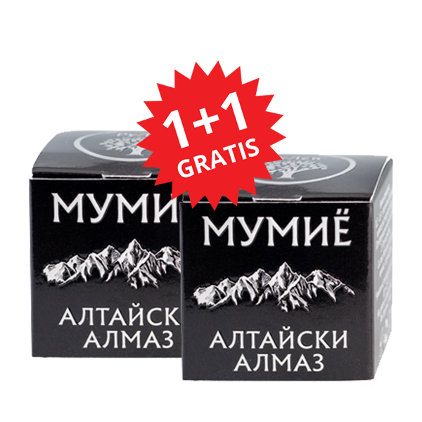 Ruski MUMIO MELEM ALTAJSKI ALMAZ obogaćen je uljem sibirske jele, uljem oblepihe, uljem avokada, ricinusa kao i kamforom. Pakovanje 50g